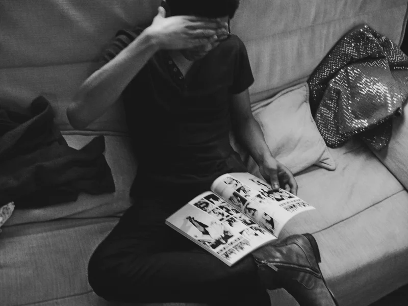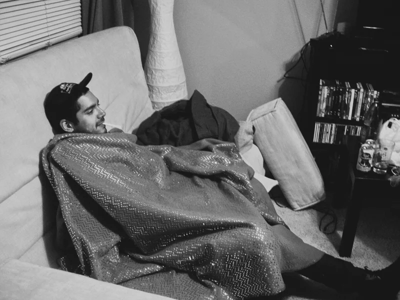 ERIC, RETIRING FOR THE NIGHT IN HIS BEST EVENING THROW.