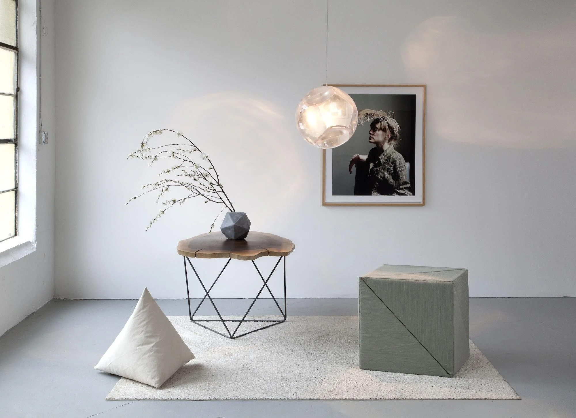 Each of the five objects in the exhibition is based on one of the five platonic solids - tetrahedron, hexahedron, octahedron, icosahedron, and dodecahedron - a series of symmetrical polygons with four, six, eight, twelve, and twenty faces, that have been a source of wonder among artists, philosophers, and designers since antiquity. Over the years, Wassmann has experimented with these forms in material studies and devised five pieces, each of which serves at least two functions. All of Wassmann’s work encompasses a philosophy that design and architecture do not necessarily abide by the Modernist ideology ‘form follows function’ – rather they present how ‘form performs function’.”