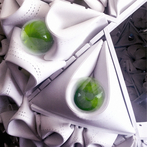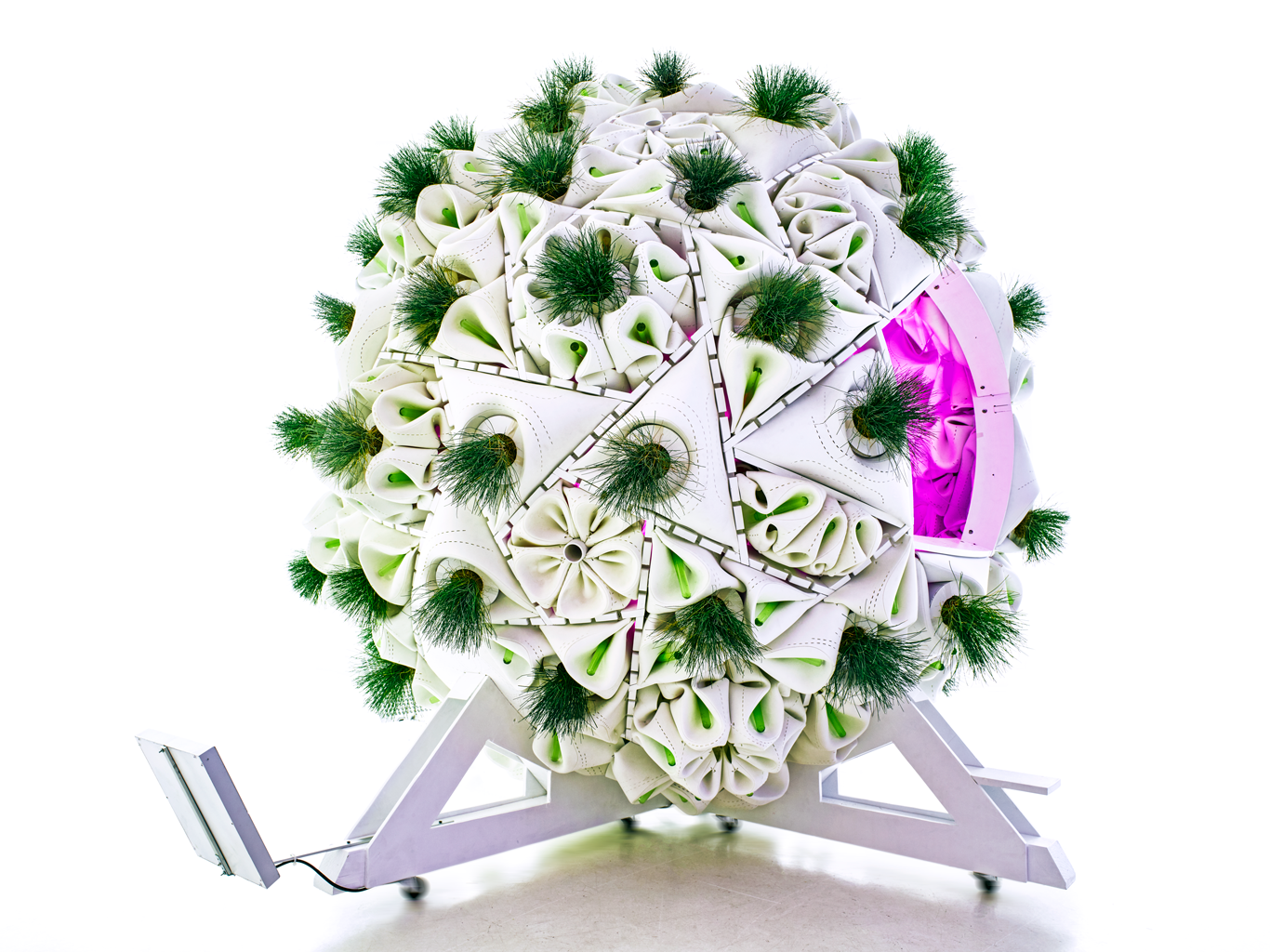The Plug-In Ecology; Urban Farm Pod is a “living” cabin for individuals and urban nuclear families to grow and provide for their daily vegetable needs. It is an interface with the city, potentially touching upon urban farming, air quality levels, DIY agronomy techniques in test tubes, algal energy production, and bioluminescent light sources, to name a few possibilities. It can be outfitted with a number of optional systems to adapt to different locations, lighting conditions, and habitation requirements. While agricultural food sources are usually invisible in cities such as New York, the pod archetype turns the food system itself into a visible artifact, a bioinformatic message system, and a functional space.